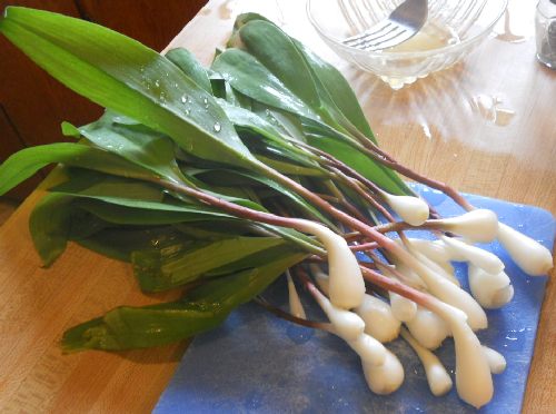 The first is FREEZING. Remove the roots, rinse and bundle your ramps in handfuls in ziploc bags in bunches about the same as scallions come in from the store. Squeeze as much of the air out of the bags as possible before sealing but don't squeeze so hard that the ramps are crushed. Date the bags and toss them in the freezer. These frozen bunches can be "shaved" or chopped as needed for cooking throughout the year without any need to thaw them first. (You'll be needing a SHARP knife with a sturdy blade for cutting frozen ramps) These work great in those scrambled egg dishes I referenced earlier. They are not as great as fresh ramps but still darn good. When placing your ramps in the bag to freeze them keep them all facing the same way, bulbs on one end and leaf tips on the other. This way when you take out a bunch to shave off some for a recipe you may more easily choose between bulb or leaf bits as best fits the application at hand. Kept solidly frozen your ramps should easily last until next spring when it's time to go get more. I've never had them last that long myself as they get used up very quickly.