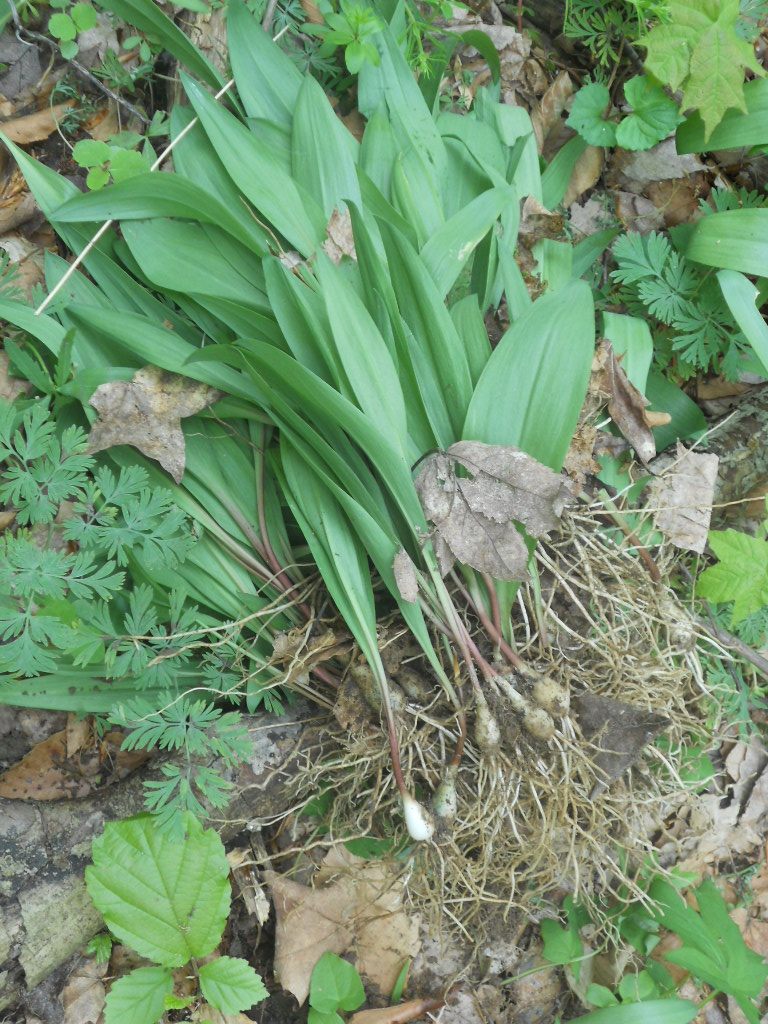 Once you've located ramps the next step is getting them out of the ground without damaging them. We use a military entrenching tool (a folding shovel). Lock it into the fully open position like a conventional shovel. Place the tip of the blade a few inches from the individual ramp or preferably clump of ramps and push it straight down into the ground deep enough to extend below the depth of the bulbs and lever up the ramps to loosen them. With the clump of soil loosened use your hands to wiggle the ramps free of the dirt. If the soil is loose and sandy enough they may root as much as 8 inches deep and their roots will be tangled together so it will take a little effort to extricate them intact.